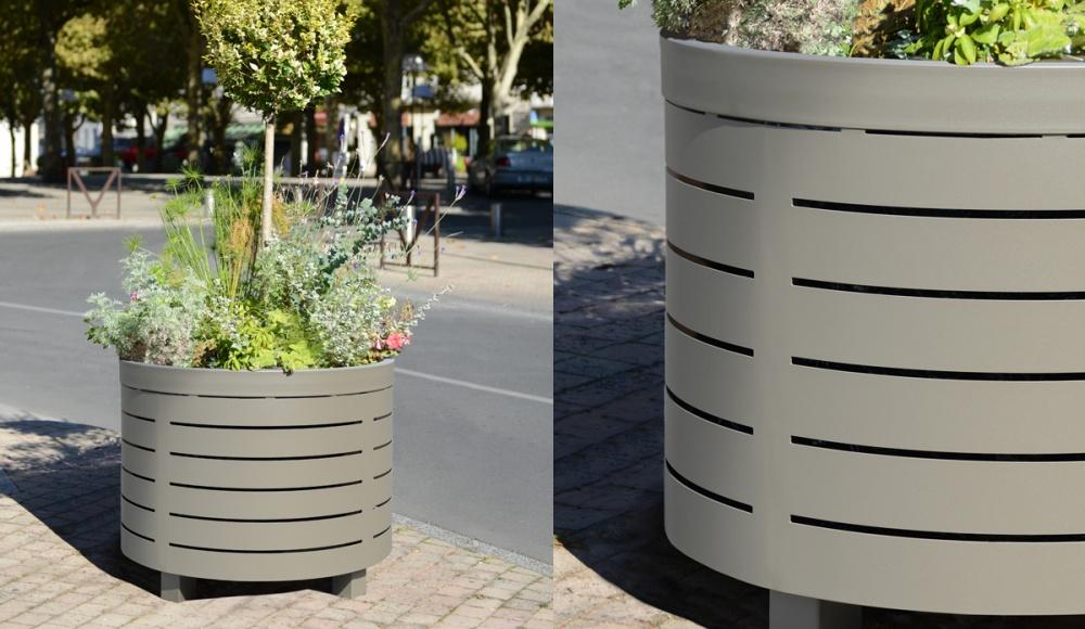 Clea planters - Street furniture : A planter with a simple design, a contemporary aesthetic, available in 2 versions: square or round. Optional adjustable feet to ensure perfect stability.